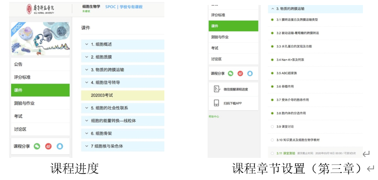 教学平台:中国MOOC平台、QQ。借助中国MOOC平台四川大学《细胞生物学》国家精品课资源进行校内的SPOC教学,校内SPOC线上课程共有174人选课。