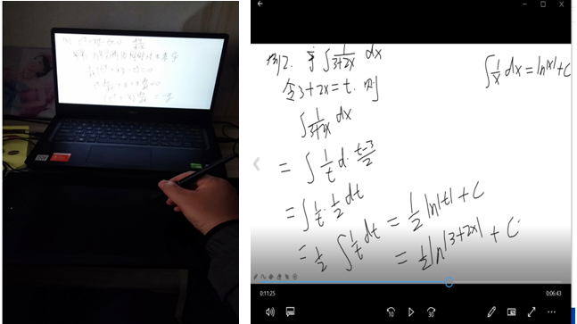 工欲善其事,必先利其器。线上教学对教学设备有一定的要求。自己有笔记本电脑和手机,能完成课件的制作以及线上直播和录播。由于数学需要大量的计算及证明,手写是最好的方法,因此购置了手写板,完全实现了在线手写教学。手写板完全克服了课件不能对数学推理过程完美演示的缺点。