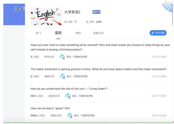7.在智慧树翻转课上发布话题讨论,并积极互动回复;