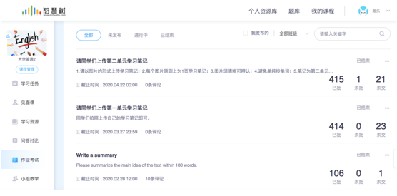 8.在智慧树翻转课上发布作业,及时检查学生们的学习情况;