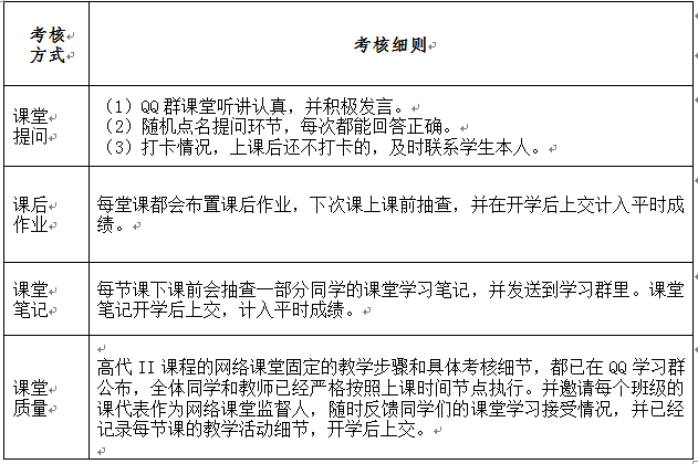 6、9:50--10:00,课堂第四环节,QQ群课堂,老师课堂随机点名同学,回答问题,计入课堂测验成绩。