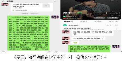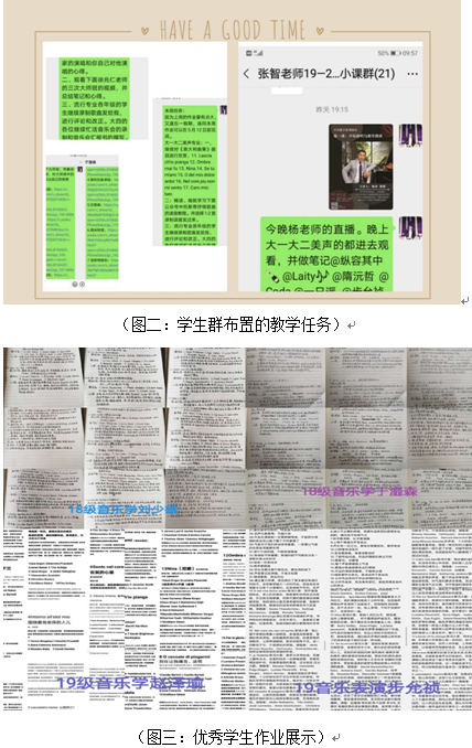 2.组建学生的微信群,在群中发布三组学生的个性学习任务。这样就能因材施教的对学生进行辅导,而且能够让学生综合获得声乐关联学科的知识,比如对美声的学生发布:(1)中国声乐名家大师课,并总结笔记,让学生对声乐这门学科的基础理论进行学习和研究。(2)发布国外名家声乐大师课,并让学生写出感想。在听不懂语言的情况下,学生能利用自己对声乐基础理论的构建,获得自己对声乐教学的理解。(3)对必须的声乐基础曲目,让学生多去寻找视听版本,并且用自己的审美去对演唱者进行评价。(4)发布一些视频和音频,让学生对歌唱语言进行学习。对流行演唱和音乐剧演唱的学生,会让他们利用网易云、QQ音乐或唱吧进行歌曲的录制,再一对一的对不满意的地方进行辅导和反复的修改。