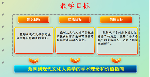 首先,按照“能力范式”的课程标准,在确定课程目标之后,教师第一步先对文化人类学的理论流派,以及田野调查逐步确立的学术史进行了理论梳理和讲解,触发学生的学习兴趣和自主开展田野调查的主观能动性。随着授课内容的循序渐进,教师逐步从理论讲解转入田野调查教学案例示范阶段。