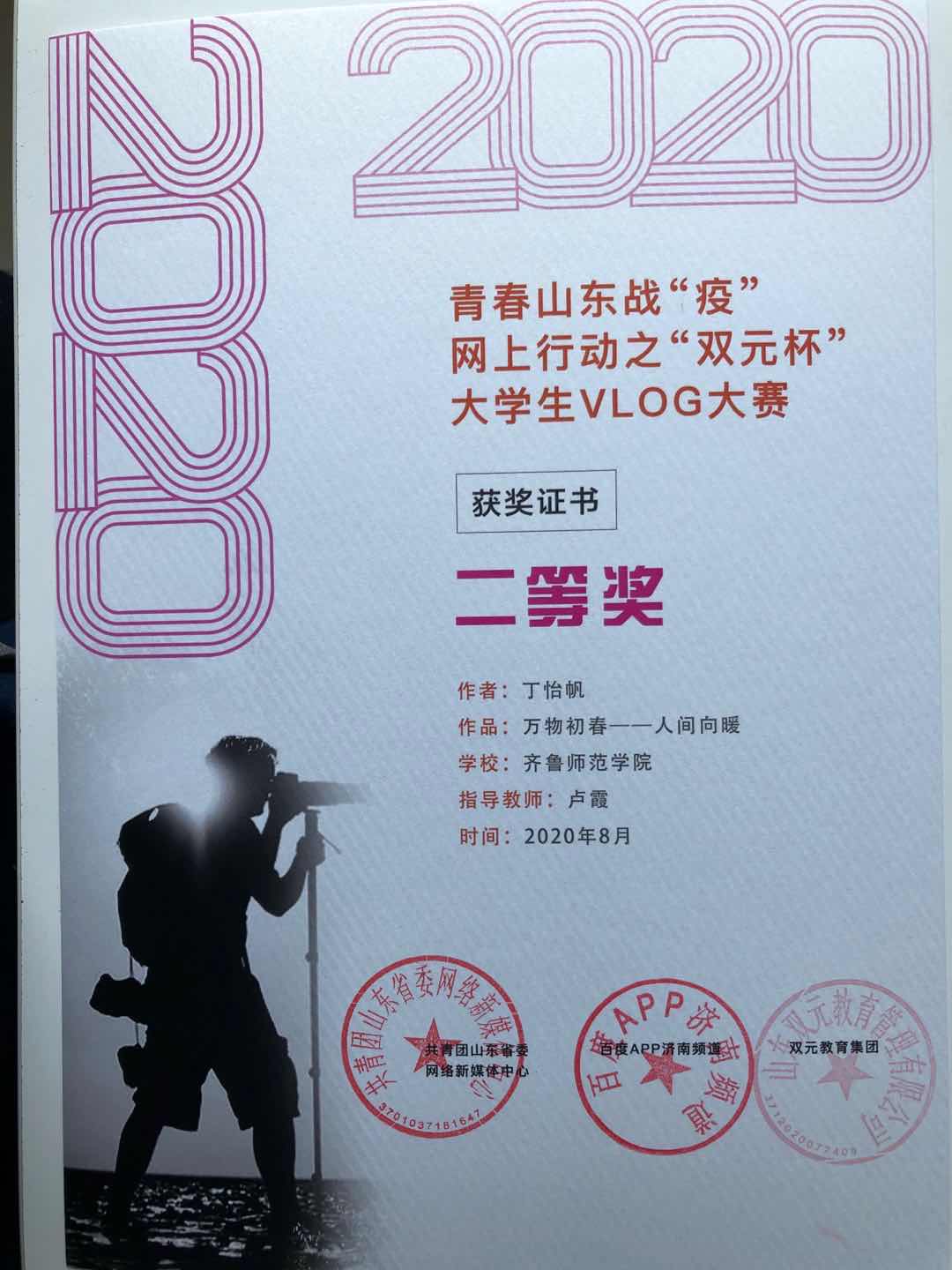 从初春到盛夏、从破土而出的悸动到繁花似锦的热烈,历经5个多月的积极筹备,由共青团山东省委网络新媒体中心主办、双元教育集团承办、百度APP协办的“青春山东战疫网上行动之‘双元杯’大学生vlog大赛”在省内20余所高校师生的支持下,顺利开展。经过海选、初赛、复赛,入围50强的作品进入决赛阶段,近期,由院校专家、知名媒体人、行业专家等组成评审团队,历经3个星期的严谨讨论评比,本届“青春山东战疫·大学生vlog大赛”于8月份圆满结束。