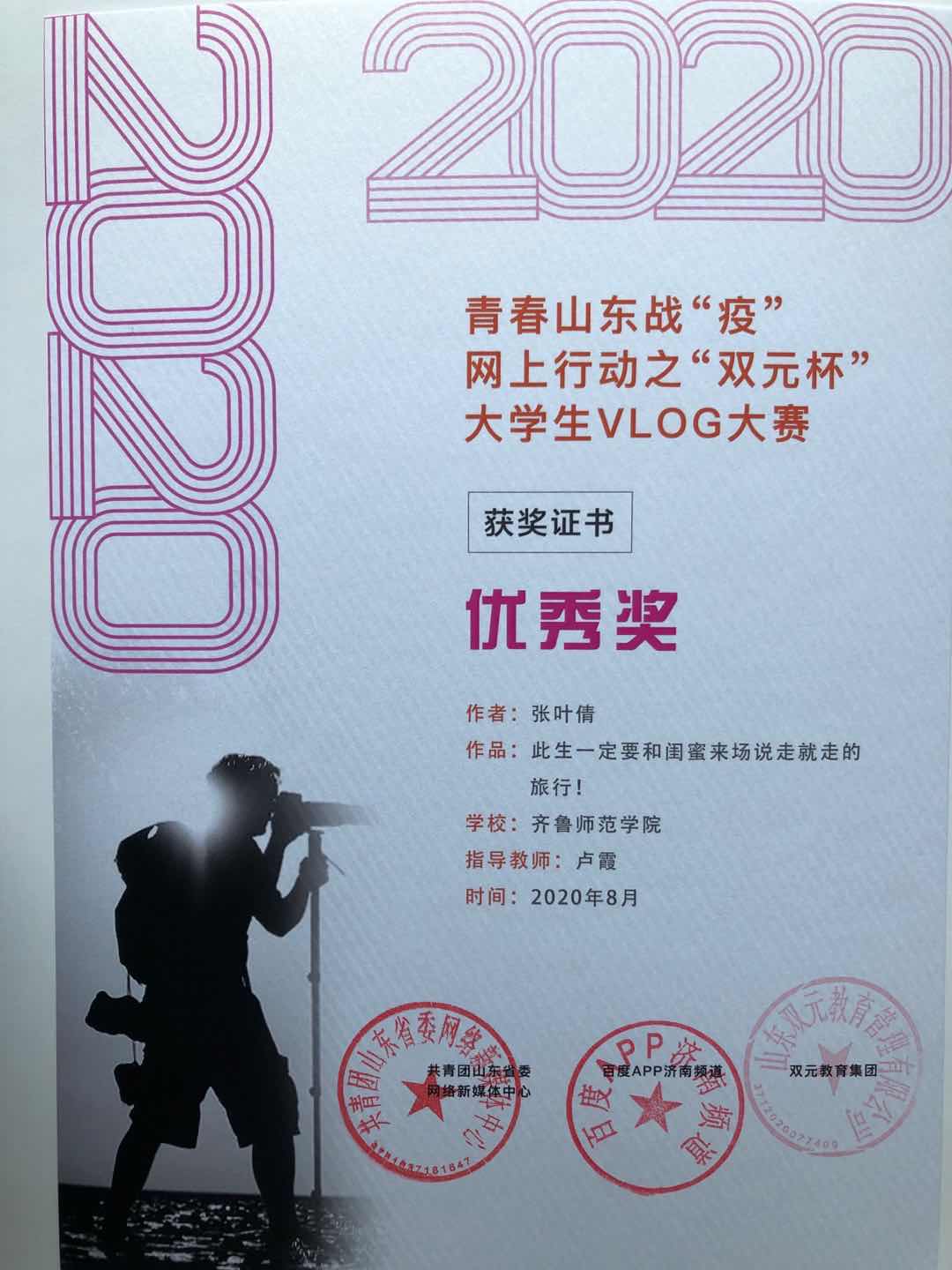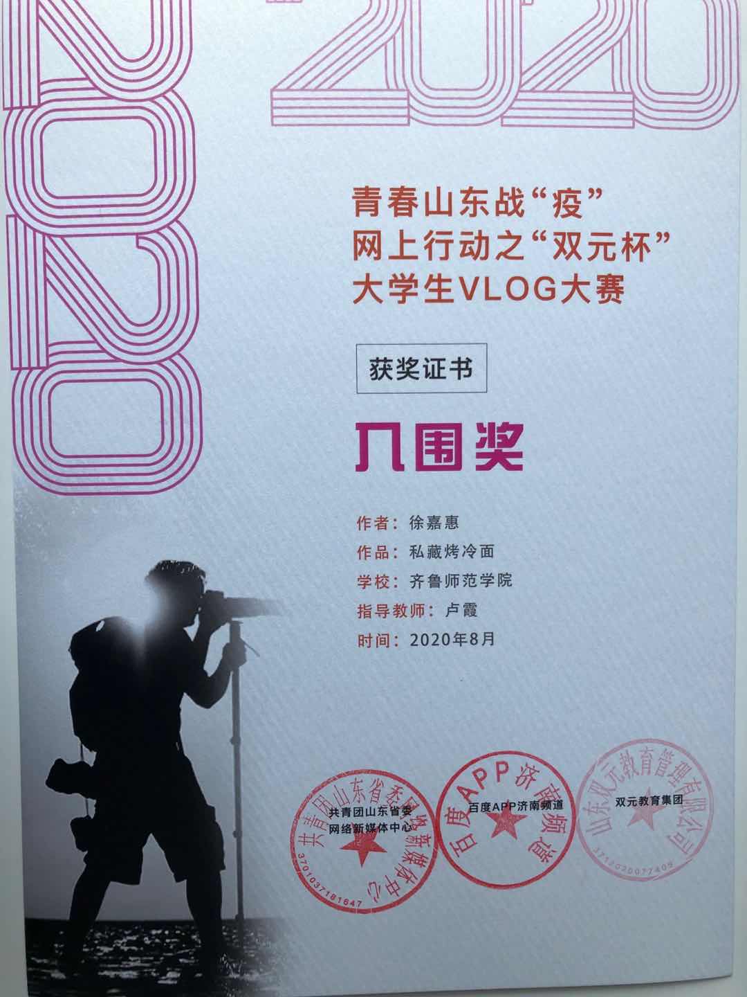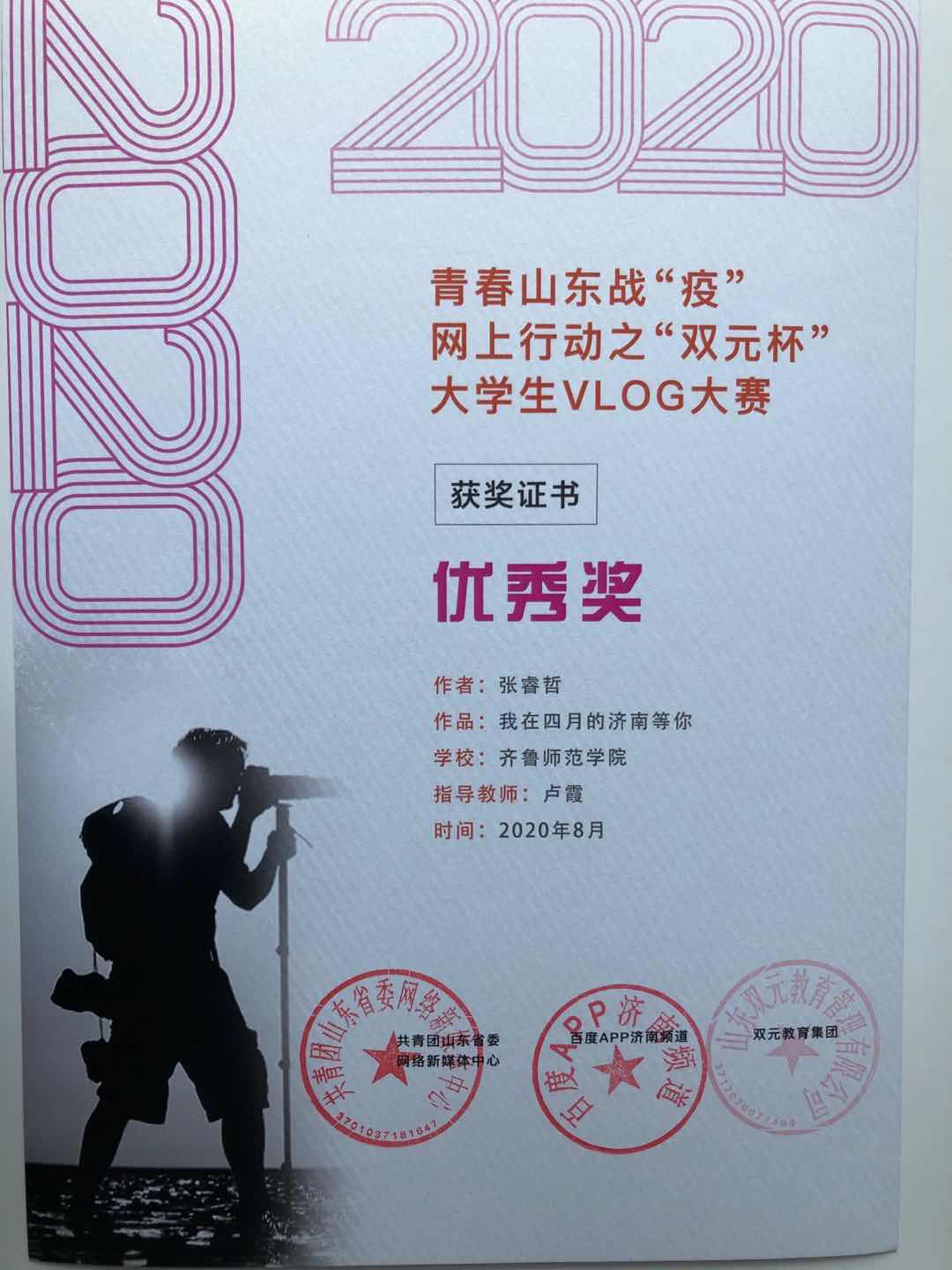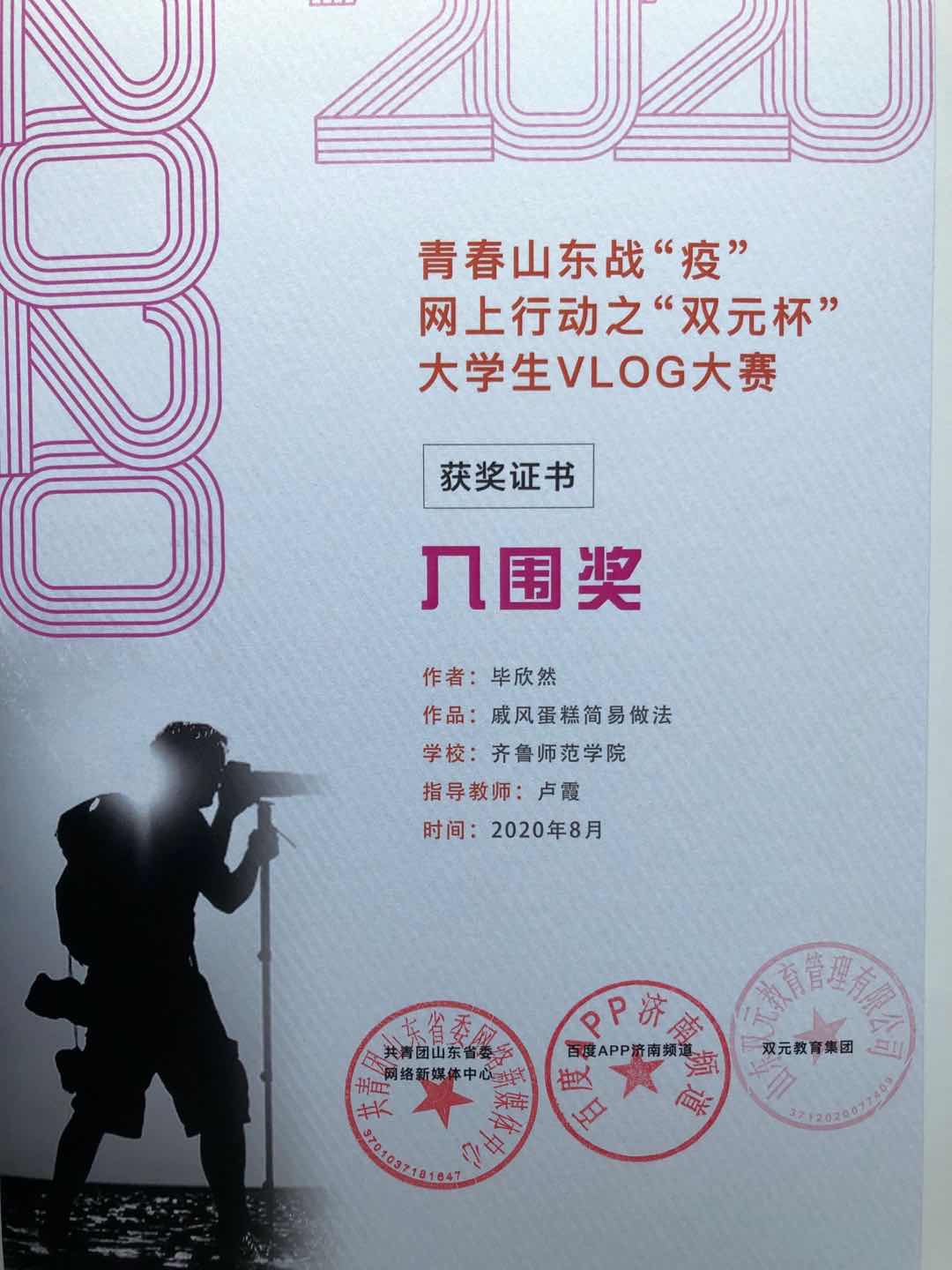BEAT365官网学生在“青春山东战疫·大学生vlog大赛”中喜获佳绩
