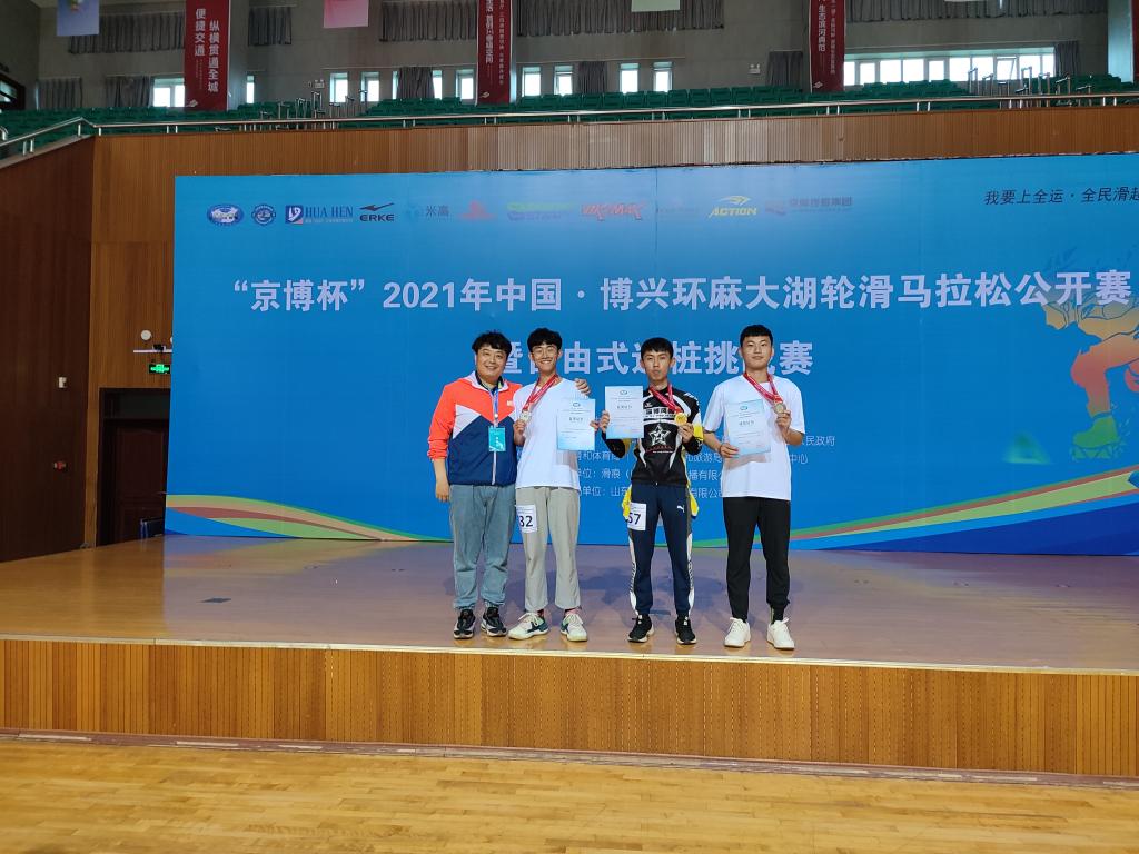 BEAT365官网派出的由21名学生组成的轮滑队在主教练卞守新老师带领下参加本次比赛的轮滑马拉松与自由式速桩挑战赛四项竞赛,运动员在赛场上顽强拼搏,最终斩获2金、2银、3铜的卓越成绩。这是去年取得1枚国家级赛事金牌成绩以来,BEAT365官网又一次在国家级轮滑比赛项目中的新突破。