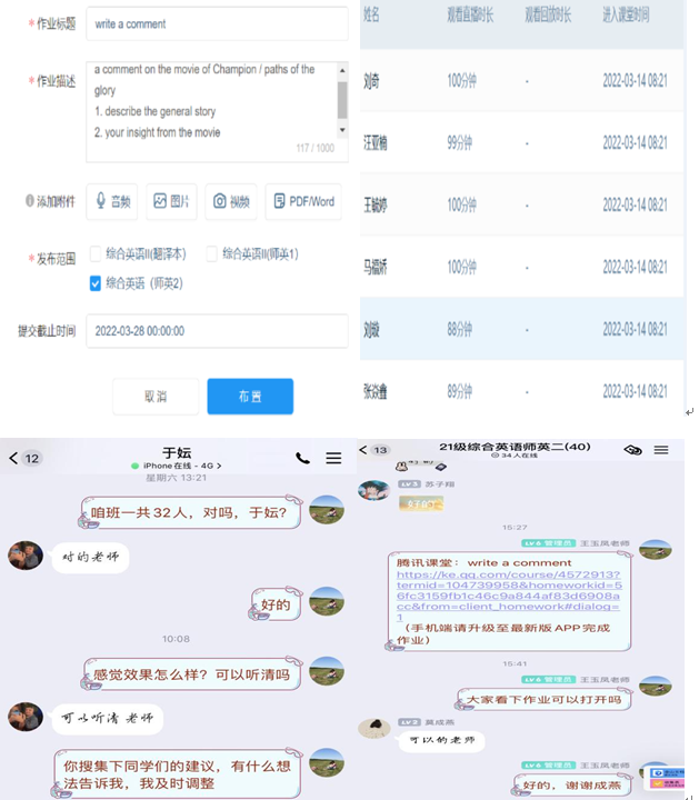 为更好地应对疫情,响应学校线上教学的号召,教师们开启了线上教学。现将外国语学院英语专业《综合英语II》课程的线上教学实施情况简要介绍如下: