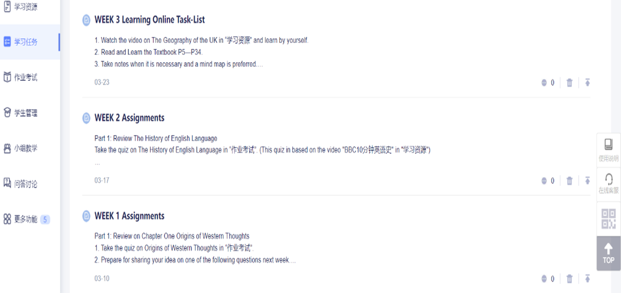 3.课后完成作业考试,并参加问答讨论区的讨论。