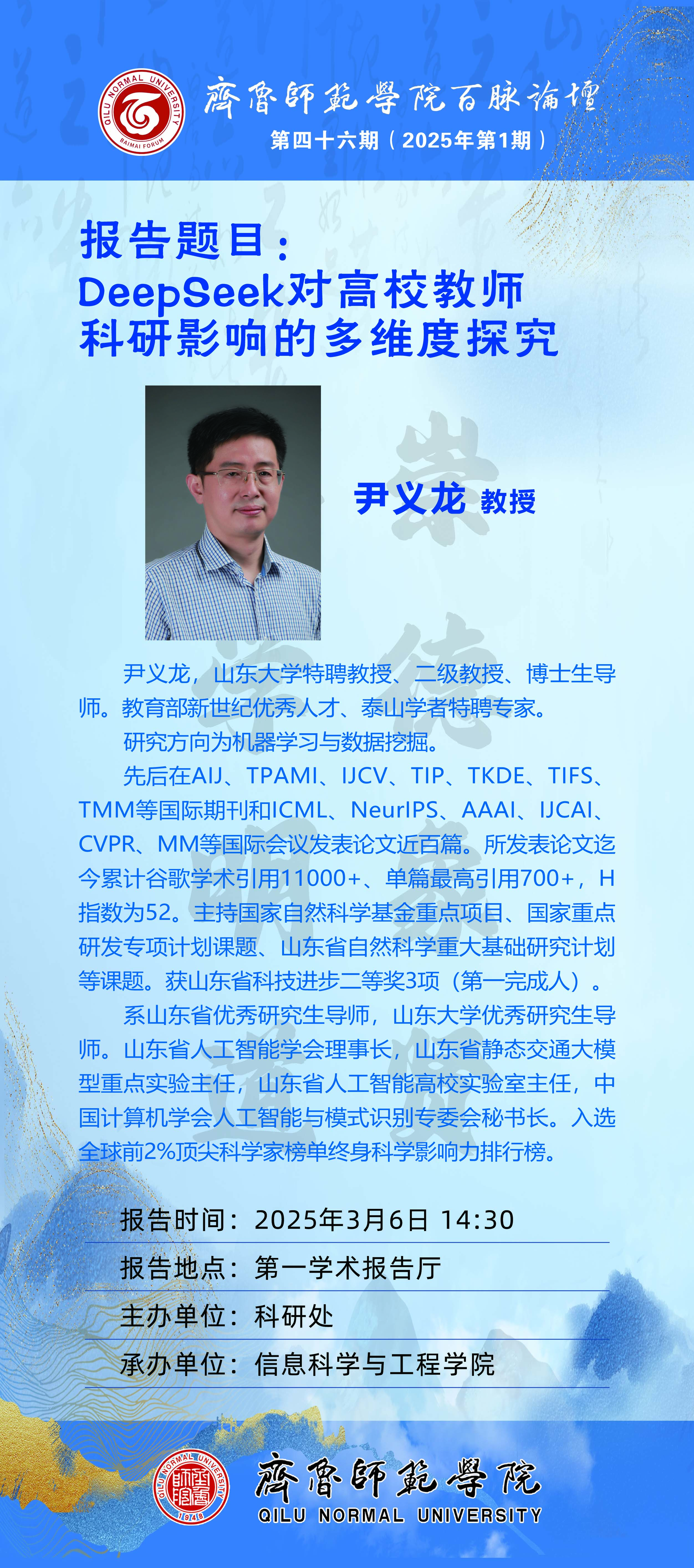 地点:章丘校区第一学术报告厅