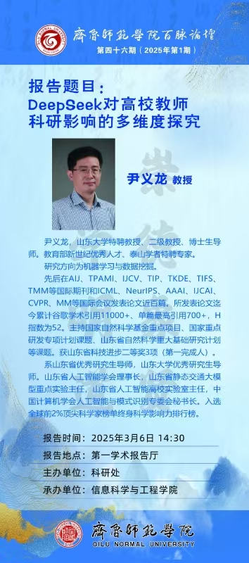 尹义龙教授围绕DeepSeek的核心技术突破、实际应用场景、使用技巧、赋能科研和高等教育等四个方面,深刻阐释了DeepSeek的技术领先性、功能的广泛性,并对在科学研究和教育教学过程中DeepSeek的应用进行了生动的讲解和详细的指导。报告后,他针对DeepSeek的具体应用与发展趋势,与参会教师进行了深入交流,并耐心解答了大家的问题。