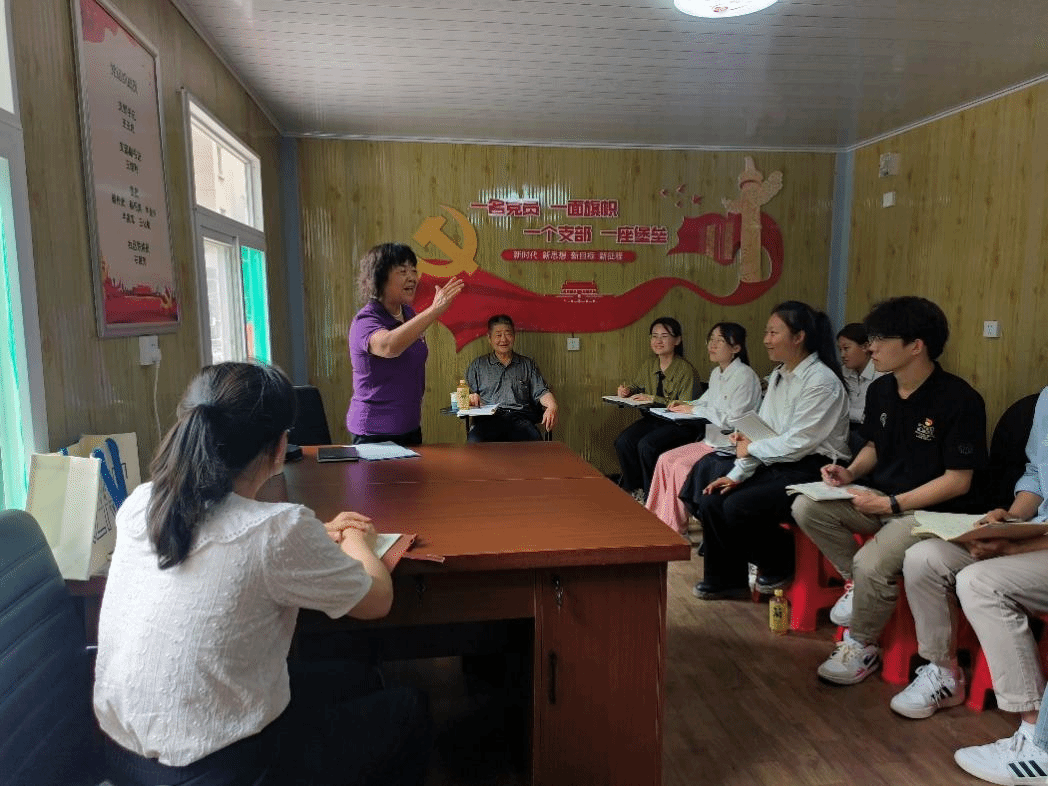 王玉娥以《不忘初心,做一名有温度的老共产党员》为题讲授党课。她带领大家一同回顾了党的光辉历程,结合个人工作经历讲述了自己的入党初心。随后,王玉娥介绍了院落党支部的基本情况,分享了她在开展社区工作时的工作做法、技巧与智慧,勉励大家在自己的工作岗位上不忘初心使命、坚定理想信念、担当作为奉献,时刻发挥共产党员的先锋模范作用。党课中,她眼神坚定、话语铿锵,小小的板房里不时传出阵阵掌声。作为一位拥有38年党龄老党员,王玉娥从企业退休后自愿担任起社区楼长,后被推选担任院落党支部书记。虽然已经72岁高龄,但是她始终饱含对人民群众的深沉热爱和对党的事业的无限忠诚,组织带领退休老党员们热心参与社区治理,为群众解决急难愁盼问题,深受群众赞扬。