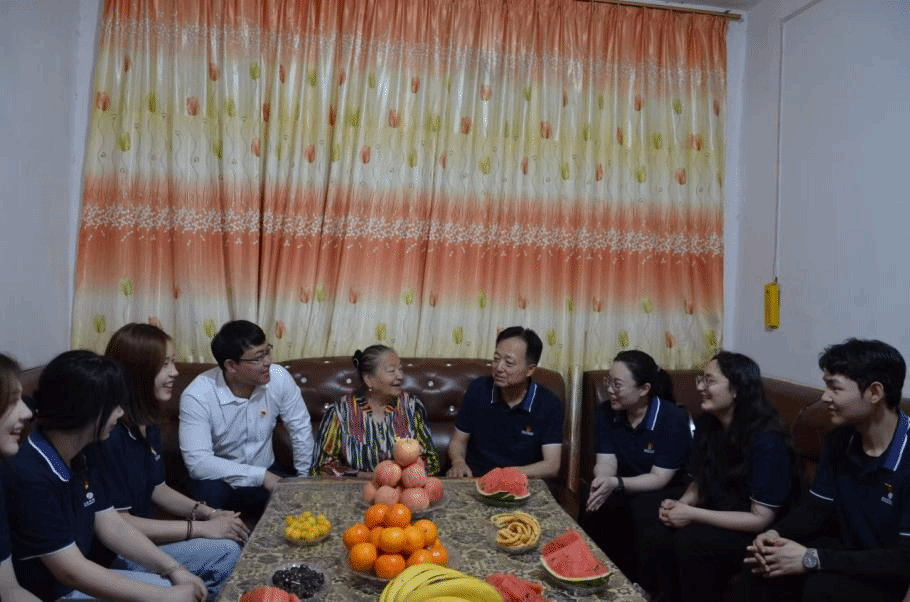 最后,党员们来到老党员图尔荪古丽·艾买提的家中进行了走访慰问。图尔荪古丽·艾买提同志在高中毕业后就向党组织提交了入党申请书,一年后加入中国共产党。作为村大队长,她积极带领村民发展村庄事务,后因村内学校极度缺乏教师,又接过重担,担任托克扎克镇中心小学教师。在国家政策的支持下,村内学校规模逐渐扩大,短缺的教师资源也逐渐得缓解,她又转赴镇医院,从事医疗服务工作,直至退休。