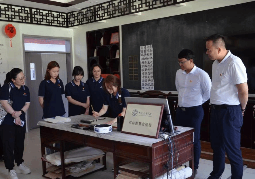 走进书法教室,映入眼帘的是学生们写的一幅幅精美的书法作品,他们用心描绘着自己内心向往的美好。美术学院书法专业实习支教生张鑫,在这里感受到了浓浓的艺术氛围,即兴书写下了“爱党、爱国、感恩、知恩”八个大字。