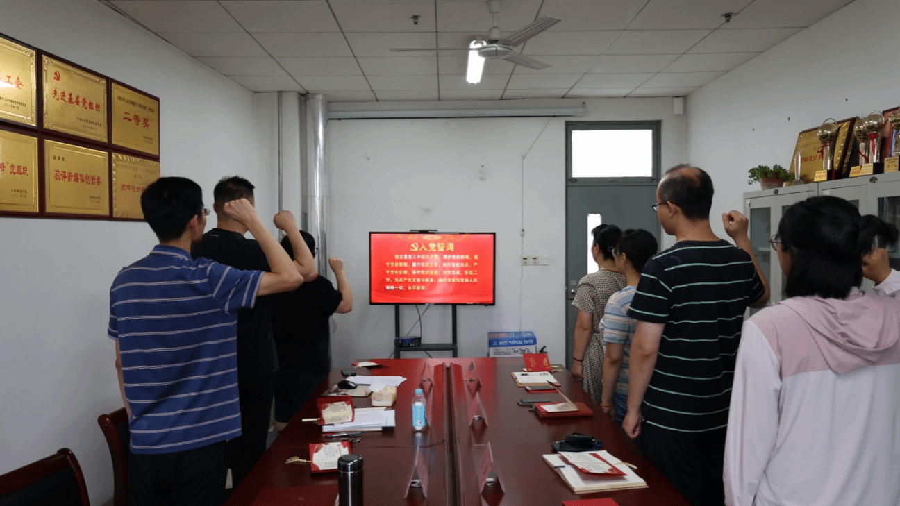 活动中,全体党员集体观看教育宣传片《走基层七一特别节目:我们的传家宝,一份珍藏66年的入党志愿书》,学习尊崇老一辈共产党员对誓言的坚守,继承发扬爱国奉献、艰苦奋斗、舍生取义、拼搏进取的优秀精神品质。支部书记向上半年过政治生日的党员赠送写有入党誓词和生日寄语的“政治生日”贺卡,让大家感受到党组织的温暖与关怀,不断增强党员的光荣感、责任感和使命感。党员代表重读入党申请书,穿越时光和全体党员共同重温自己的入党记忆,激励大家不忘初心、勇毅前行。最后,全体党员共同在鲜红的党旗下庄严宣誓,重温入党誓词,回顾入党初心,重新审视党员身份,时刻铭记“我们走得再远都不能忘记来时的路”。