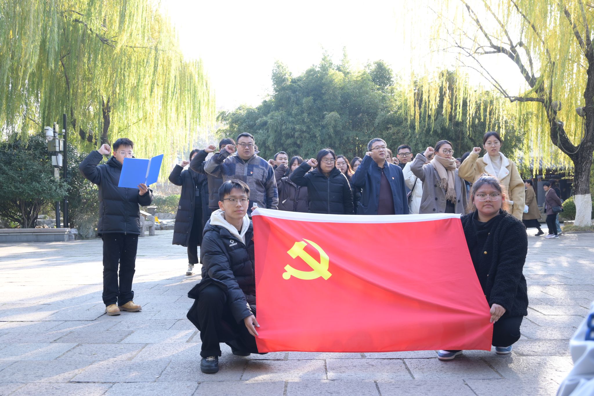 参观结束后,全体党员齐聚美铭广场,瞻仰王尽美、邓恩铭烈士纪念碑,并举行入党宣誓仪式。学生党员王世豪带领新预备党员面向烈士纪念碑宣誓。大家身姿挺拔、神情肃穆,面向党旗高举右拳,在领誓人的带领下,洪亮有力的誓词响彻广场:“我志愿加入中国共产党,拥护党的纲领……”声声誓言,是他们对党忠诚、为民服务的庄严承诺,彰显接续奋斗的决心。