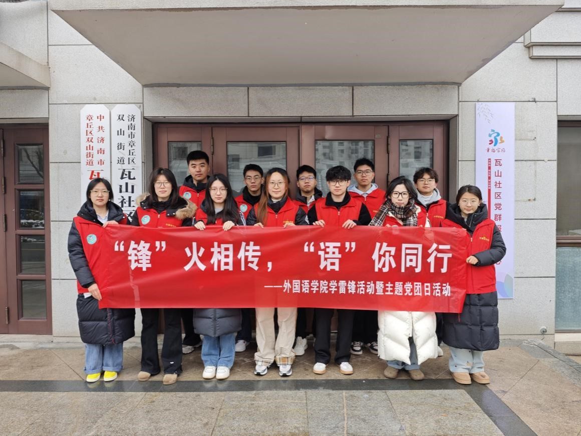 为进一步弘扬雷锋精神,传承“奉献、友爱、互助、进步”的志愿服务精神,提升大学生的社会实践能力,3月4日,外国语学院组织志愿服务队走进章丘区双山街道瓦山社区,开展“学雷锋”志愿服务暨主题党团日活动,通过环境清理、英语推广宣传行动,以实际行动践行雷锋精神,传递新时代青年的责任与担当。
