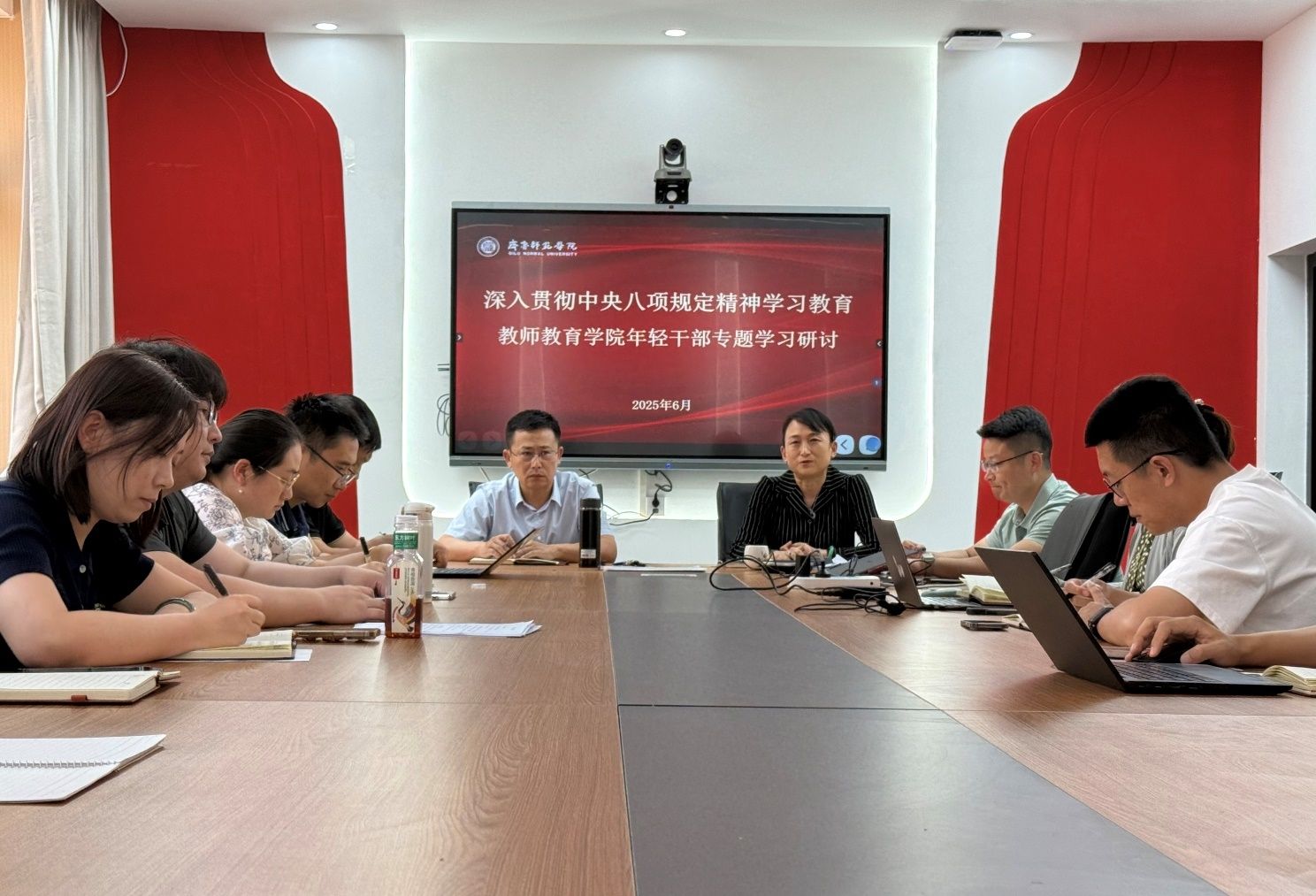 近日,教师教育学院召开深入贯彻中央八项规定精神学习教育年轻干部专题研讨会,加强对年轻干部的思想政治引领,进一步激发年轻干部学习干事热情。学院党委书记姜东菲主持讲话,并作专题党课,学院院长刘丙利出席会议。