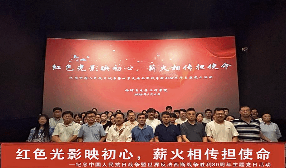 为纪念中国人民抗日战争暨世界反法西斯战争胜利80周年,弘扬伟大抗战精神,增强党员的历史责任感和使命感,9月4日,物理与电子工程学院开展“红色光影映初心,薪火相传担使命”主题党日活动,集中观看历史题材电影《南京照相馆》。物理与电子工程学院党委书记臧葳,学院党员教师代表及学生党员代表参加。