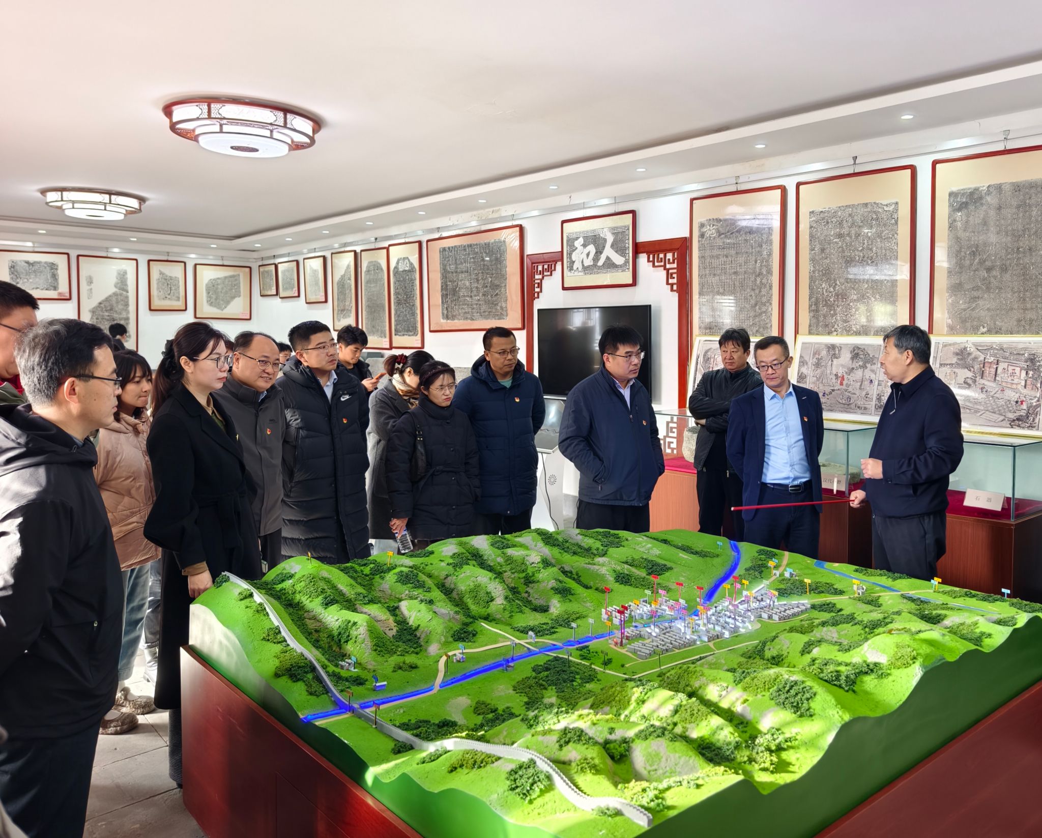 随后的走访中,党员们沉浸式感受文化底蕴与乡村振兴交融共生的和谐图景。玄帝阁飞檐翘角,既凝结古代工匠智慧,也见证文化遗产如何激活乡村旅游;石刻馆碑铭静立,“德范”文化精髓为现代乡村治理注入传统智慧;芯子展馆内,古老技艺通过市场化运营与年轻化表达重焕生机,成为村民增收与乡村品牌塑造的亮眼名片;档案馆中,一幅幅影像清晰勾勒出村庄从农耕文明走向文旅融合、从文化保护迈向产业赋能的振兴轨迹。党员们在深切感悟文化振兴作为乡村发展核心引擎的同时,进一步筑牢了文化自信,强化了助农担当,党性修养在实景研学中得到深刻锤炼。