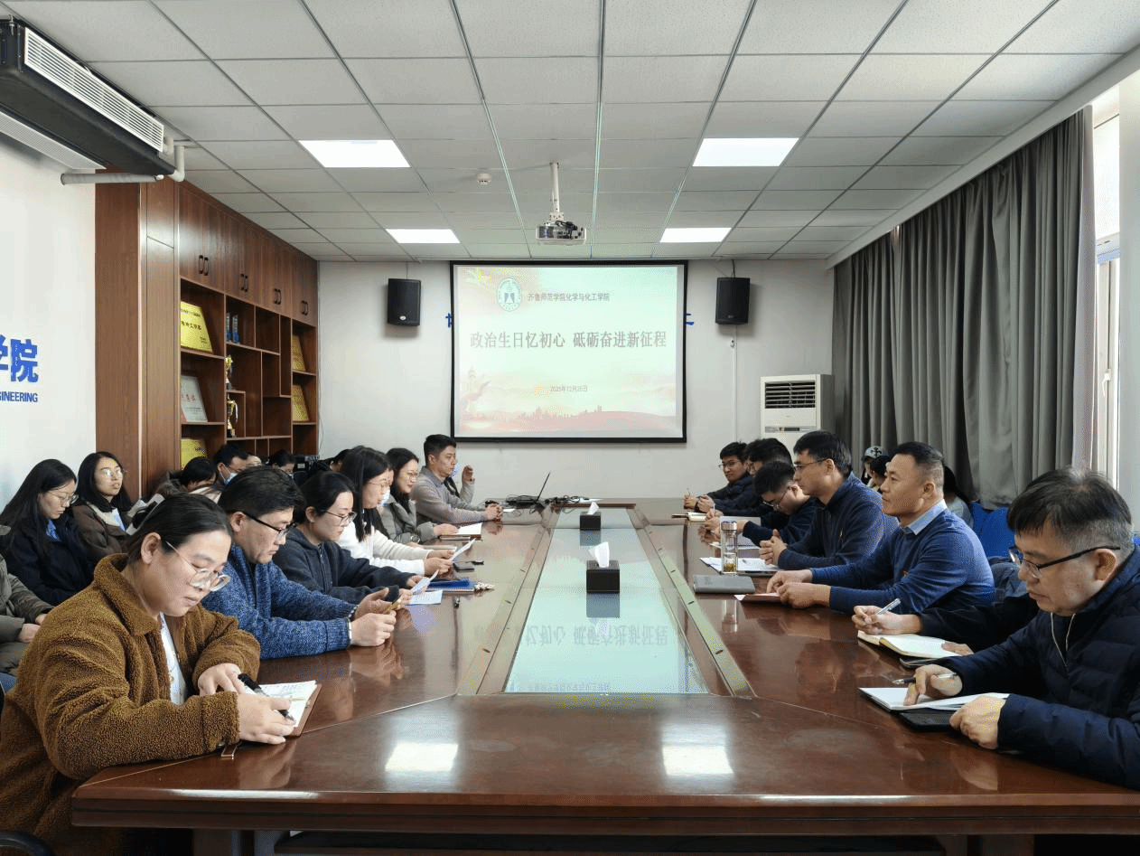 为回望入党初心,凝聚砥砺奋进的精神力量,12月25日下午,化学与化工学院在二号实验楼B310会议室开展“政治生日忆初心,砥砺奋进新征程”主题党日活动。学院党委书记巩磊、教师党支部书记、近三年新进教师党员、部分学生党员代表参加活动。活动由教师第二党支部(行政与实验管理教师党支部)书记孙常慧主持。