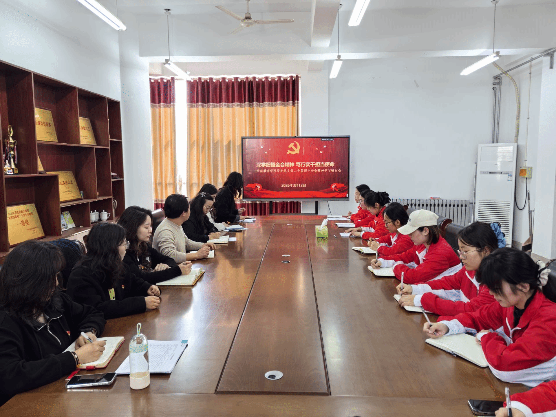 3月12日上午,学前教育学院学生第一、第二党支部根据学校和学院党委对学习贯彻党的二十届四中全会精神的统一部署安排,组织全体党员召开专题会议,深入学习贯彻党的二十届四中全会精神,开展学习交流研讨,旨在引导党员深刻把握全会精神的核心要义和实践要求,将学习成果转化为推动学习、工作的强大动力。