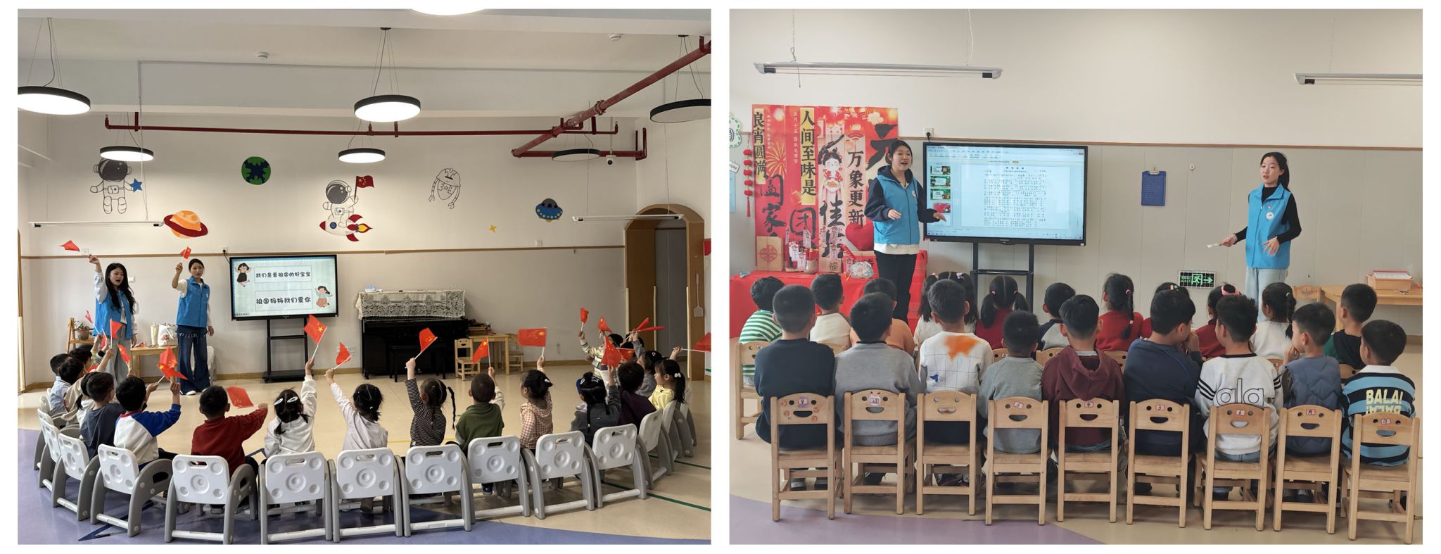 活动以铸魂育人为根本目标,以先锋服务为实践路径,构建“党员带头、团员跟进、党团协同”的联动格局,推动党建带团建工作走深走实。学院党员亮明身份、主动担当,带领团员将数学专业优势与红色教育、志愿服务深度融合,围绕雷锋精神传承、红色故事宣讲、爱国情怀培育等内容,精心设计趣味课堂、互动辅导、红色歌曲传唱等环节,既为幼儿园孩子们带来生动有趣的学习体验,也在实践教学中锤炼教学技能、提升沟通表达能力,实现志愿服务践初心与专业能力强本领的双向提升。