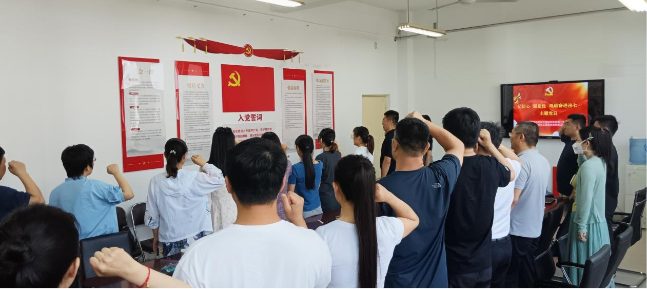 随后,全体党员面向党旗、高举右手,以铿锵有力的声音重温入党誓词,表达坚守初心、砥砺前行的坚定信念,增强了责任感和使命感。