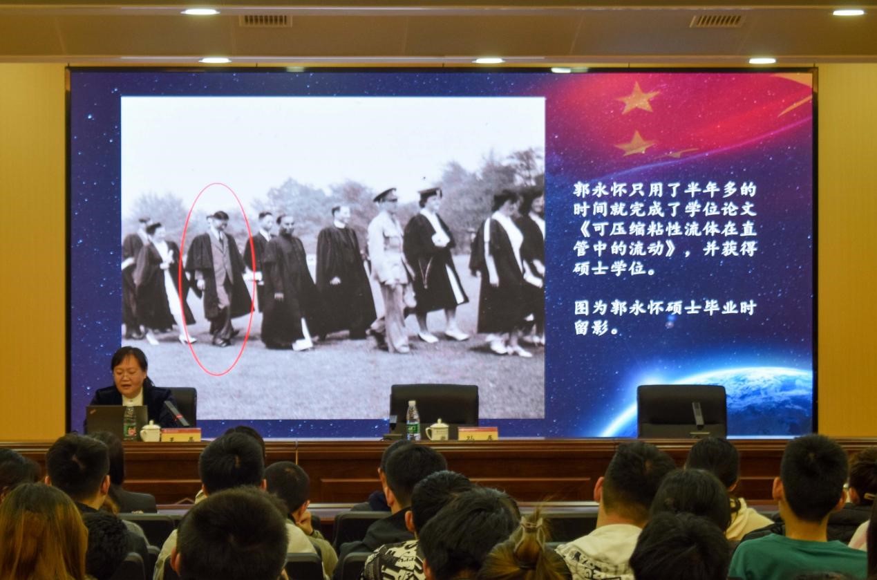 报告会上,王晶从“锲而不舍 艰辛求学”“不忘国耻 负笈远洋”“心系祖国 毅然离美”“两弹元勋 报效祖国”“大师风范 大爱无疆”“鞠躬尽瘁 以身许国”和“怀瑾佩瑜 爱在天际”七个维度,深情讲述了郭永怀先生的学术成长历程和感人事迹,阐释了他对党忠诚、无私奉献,毅然决然与民族共患难的优秀品质,以及为祖国勇攀高峰、科技报国的价值追求。王晶运用珍贵详实的历史资料,结合声情并茂的深情讲述,使在场师生备受感动,深受教育。