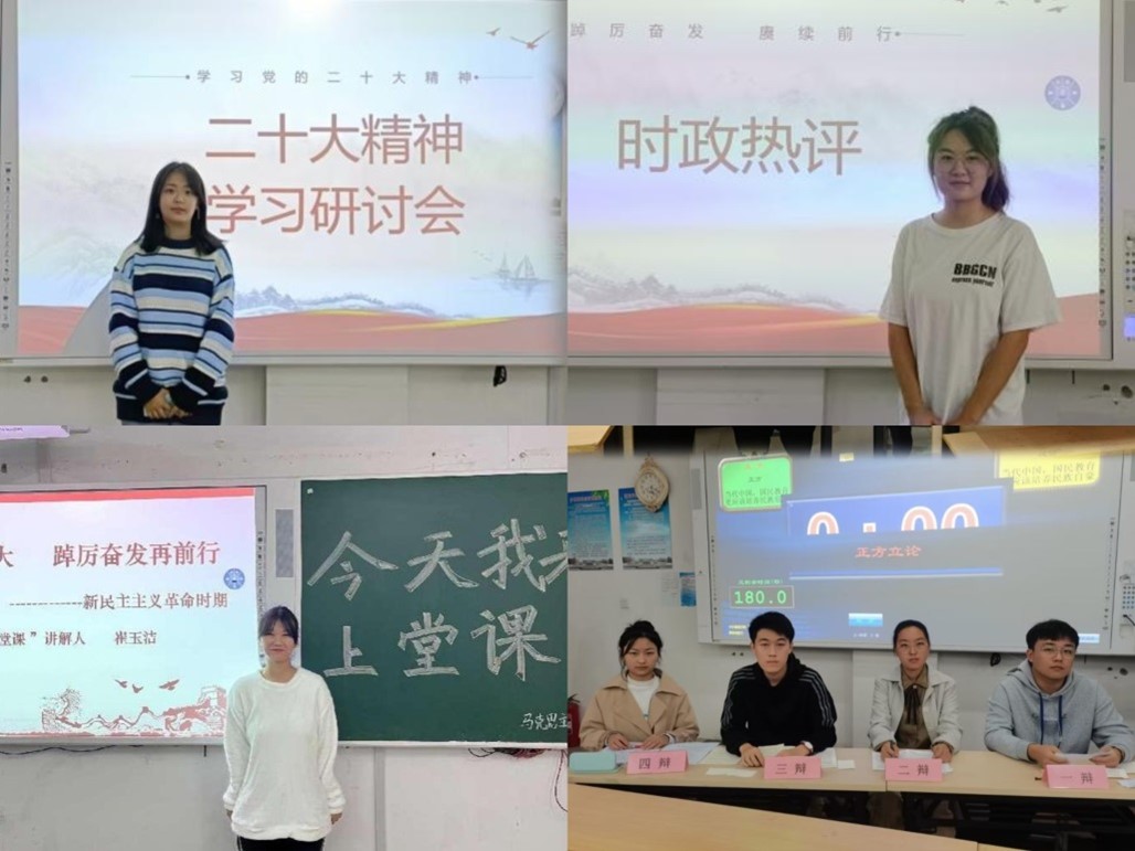 创新育人载体,激发青春活力。学院牢牢把握党的二十大鲜明主题,通过开展主题演讲、思政主题辩论赛等活动,创新育人载体,将课堂教学与学生“第二课堂”紧密结合,将党的二十大精神融入到学生教育活动中,教育引导学生怀抱梦想又脚踏实地,敢想敢为又善作善为,既丰富了课堂教学形式,又提升了学生活动内涵性。