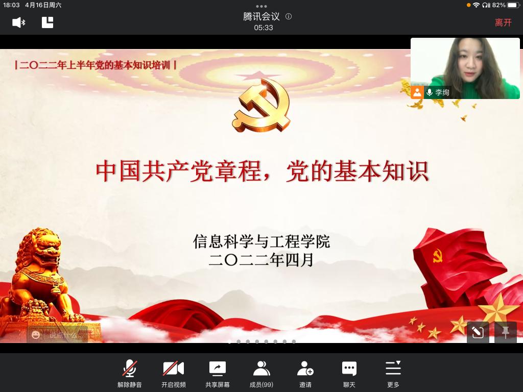 信息科学与工程学院顺利开展入党积极分子线上党课培训班
