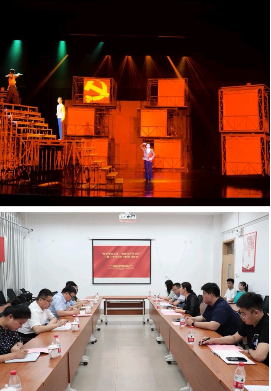 活动在山东青年政治学院举行。会前,与会人员赴山青剧院观看舞剧《挑山》,大家纷纷被该剧展示出的勇挑重担、永不懈怠、一往无前的挑山精神所感动。交流会上,三位党组织书记分别就支部基本情况、党史学习教育开展情况、“我为师生办实事”有效举措进行了详细介绍。与会人员纷纷就观看舞剧后的感受、支部开展党史学习教育的亮点、未来三个党组织联合开展活动的方向等进行了充分探讨和交流。
