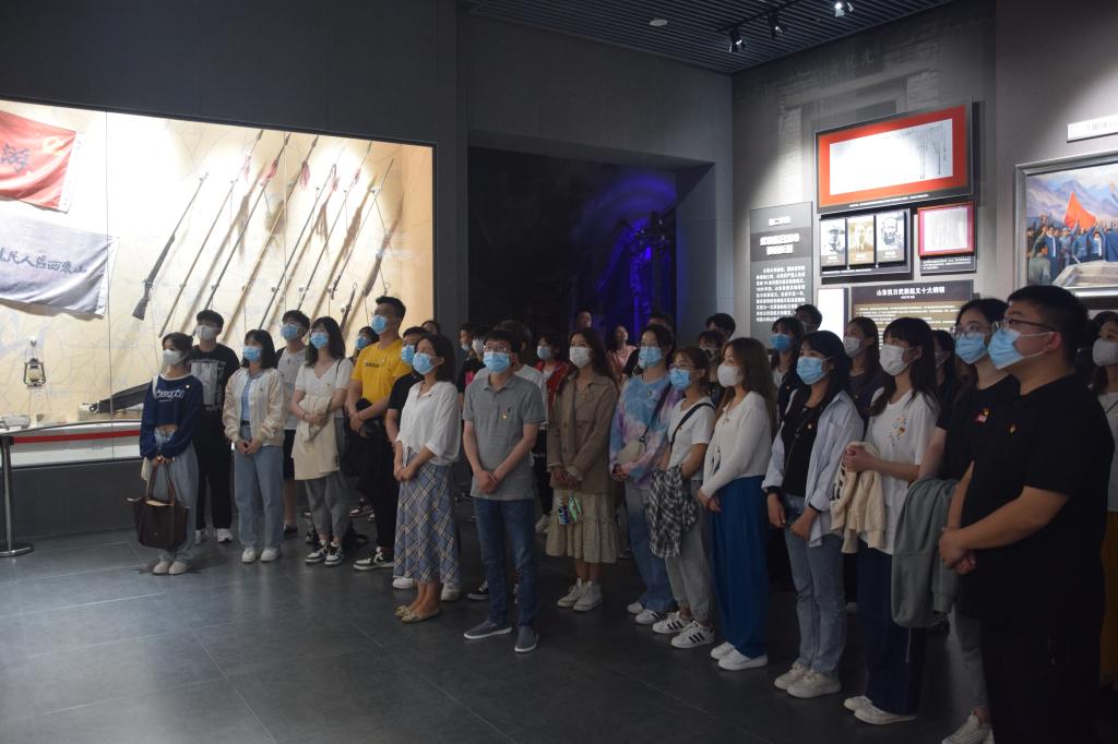 为深入推进党史学习教育,提升学生支部党员的信念追求和责任担当,5月13日,音乐学院学生党支部组织全体党员赴济南大峰山党性教育基地开展党史学习教育现场教学。