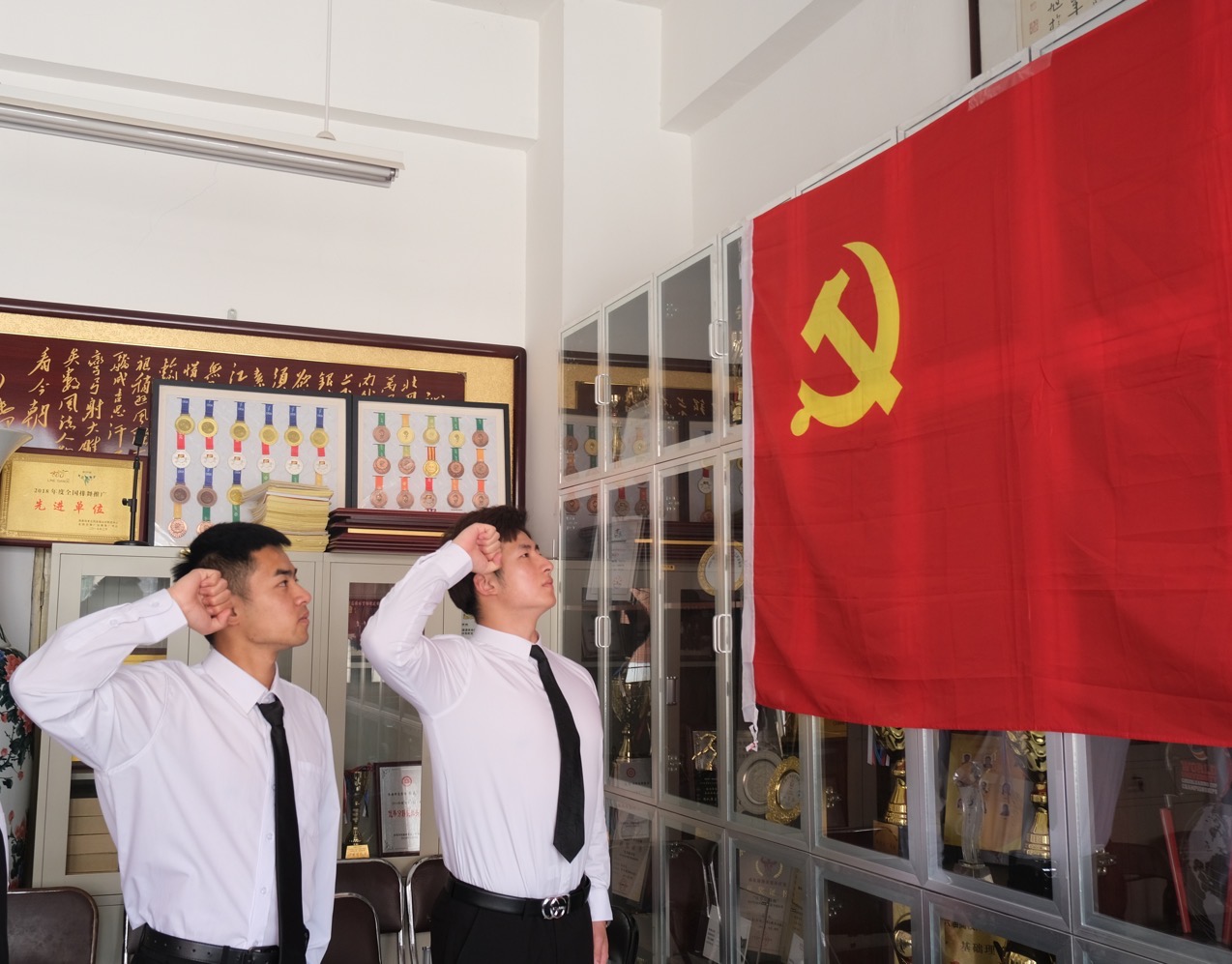正在念大二的高飞、马彪两位新党员心情激动向党组织表白心声,“入党后一定要更加严格要求自己,向身边的老党员学习,不辜负“党员”这一神圣的称号,时刻牢记初心使命,不断完善自我,锤炼党性修养,德智体美劳全面发展;我们要在最好的时代,做最好的自己,让青春在奋进新征程中绽放绚丽之花。”。