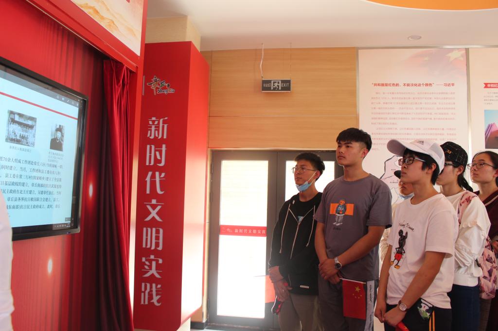 讲解员利用研究所内的互动屏,向同学们绘声绘色地讲述了章丘儿女的抗战血泪史——郭恒祥竖起章丘第一面中国共产党党旗,辛锐参加抗日救亡斗争,李曼村等70多名爱国志士成立章丘第一支抗日武装……历史不会忘记,当代青年更不应该忘记今天的和平与幸福是浴血奋战的先辈们用生命与鲜血换来的。先辈们砥砺奋进、淬火成钢的精神品质、坚如磐石的理想信念、百折不挠的英雄气概让同学们大为感触。