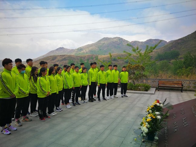 参观学习的尾声,师生党员面向党旗重温入党誓词,大家在鲜红的党旗前整齐列队,右手握拳举过肩头,面向党旗庄严宣誓:“我志愿加入中国共产党,拥护党的纲领,遵守党的章程,履行党员义务,执行党的决定,严守党的纪律保守党的秘密,对党忠诚,积极工作,为共产主义奋斗终身,随时准备为党和人民牺牲一切,永不叛党。”誓言铮铮,响彻春日的石峪寺,这正是体育学院师生不忘初心,一心向党的决心。
