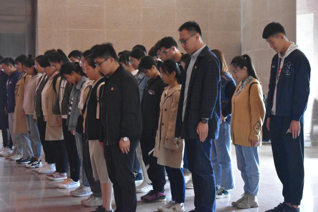 “英雄是时代的标杆,英雄精神是指引我们前行的明灯。”在工作人员引导下,大家首先前往莱芜战役纪念馆观看革命年代的实物资料,聆听讲解员讲述莱芜战役的来龙去脉,重温了革命先烈浴血奋战的革命事迹以及艰苦奋斗的革命历程,接受了一次深刻而又生动的爱国主义教育。随后,来到全景画馆里,通过宏大生动的莱芜战役画幅,身临其境般展示了战役全过程,深切感受到了那段“前方将士浴血奋战,后方人民全力支援。”全民族奋起抗战的历史。紧接着,大家来到革命烈士纪念碑前,党员面对鲜红党旗,重温入党誓词,并与入党积极分子一同瞻仰革命烈士纪念碑。“烈士的死,换来人民的生。”而后,大家前往缅怀堂缅怀革命先烈,全体默哀三分钟,致敬革命先烈。最后大家来到鲁中抗日战争展览馆,学生党员、16级历史学本科班国先翼同学向在场的师生讲述了中国人民抗日战争的艰辛,着重讲述了山东人民在抗日战争中所作出的牺牲,同时他呼吁,“当代大学生要自觉做到思想爱国与行为爱国统一,以家国情怀托举新时代中国青年使命。”
