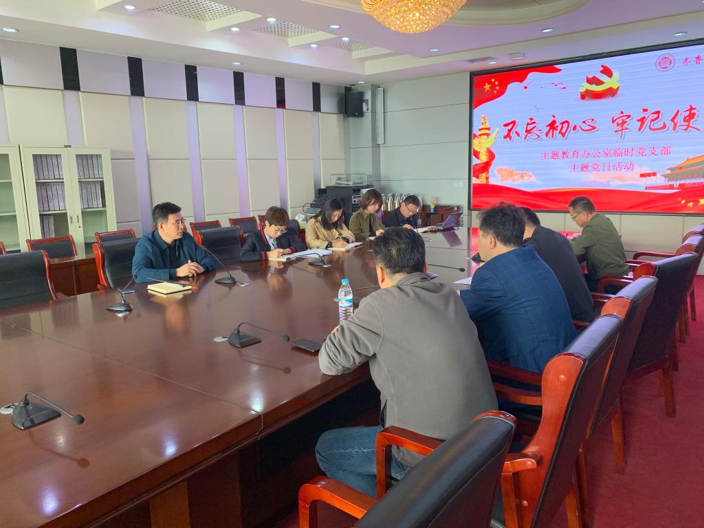 为庆祝中华人民共和国成立70周年,深入推进“不忘初心、牢记使命”主题教育工作,10月12日,主题教育办公室临时党支部组织开展“不忘初心、牢记使命”主题教育。