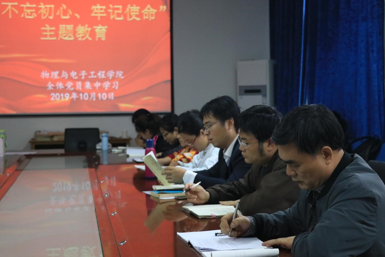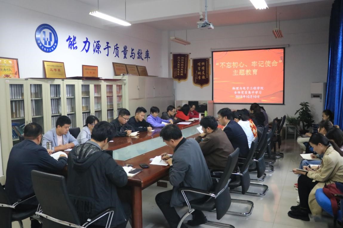 物理与电子工程学院召开全体党员会议进行“不忘初心、牢记使命”主题教育集中学习