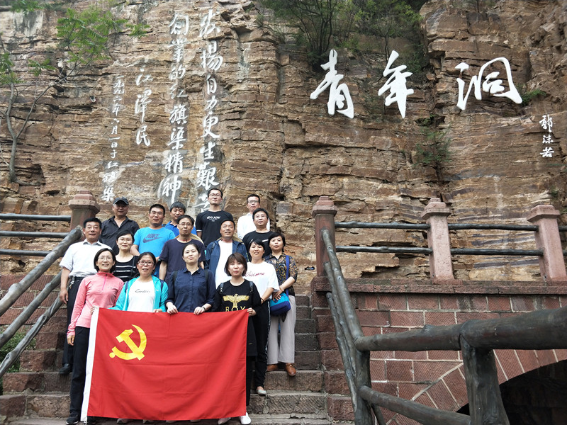 在党总支书记孔志学的领誓下,在青年洞前,面对党旗庄严宣誓,全体党员重温了入党誓词,激励自己牢记党的宗旨,不忘初心。他强调,每一名党员都要发扬红旗渠精神,踏实工作,求真务实,在思想上受到教育,在工作上有新的提升。要履行党员职责,尽职尽责,以身作则,发挥模范带头作用;要立足本职,爱岗敬业,教书育人,要用努力工作,做出成绩实现对党表达的决心和承诺。