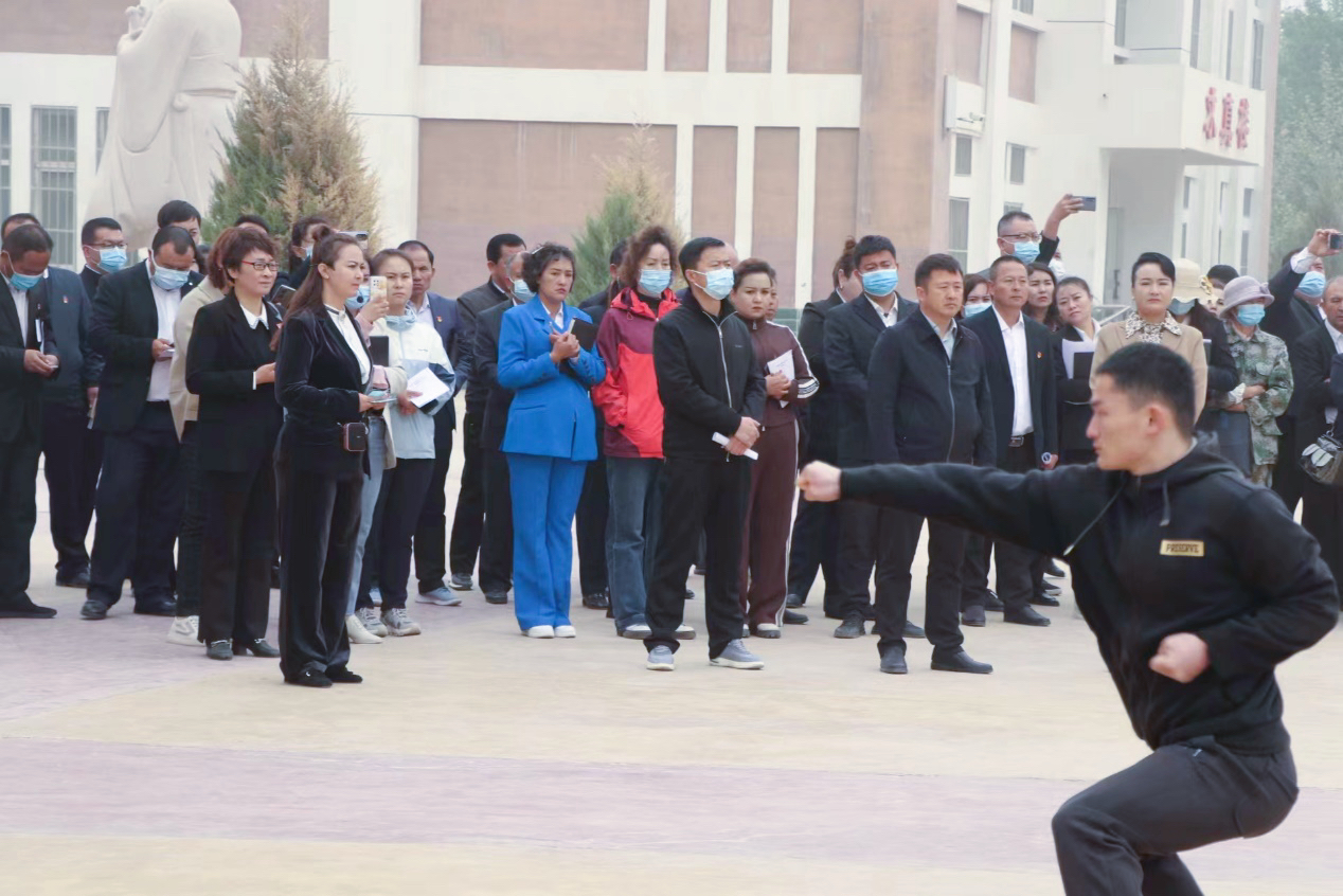 为深入开展学习贯彻习近平新时代中国特色社会主义思想主题教育,牢牢把握“学思想、强党性、重实践、建新功”的总要求,学校援疆实习支教团带队教师孔志学、王通组织带领援疆支教学生在麦盖提县第六小学和麦盖提县第四中学创办武术社团,教授当地学生国学武术操,受到师生、家长的高度赞扬。