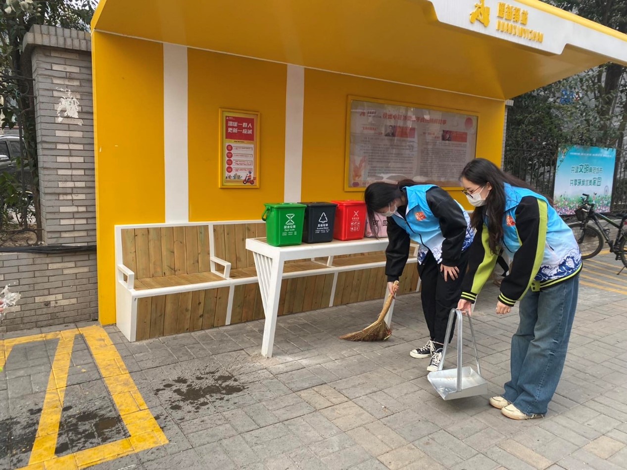 在花园路第二社区党委副书记郭小彤的指导下,确定志愿服务活动的具体事宜,在泉新泉驿综合服务站为外卖小哥开展爱心义剪活动,在花园庄东路和利农庄路交界口的外卖小哥休息亭开展驿站清洁活动。