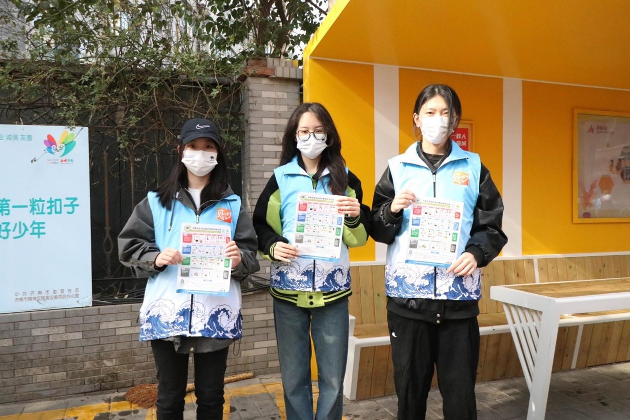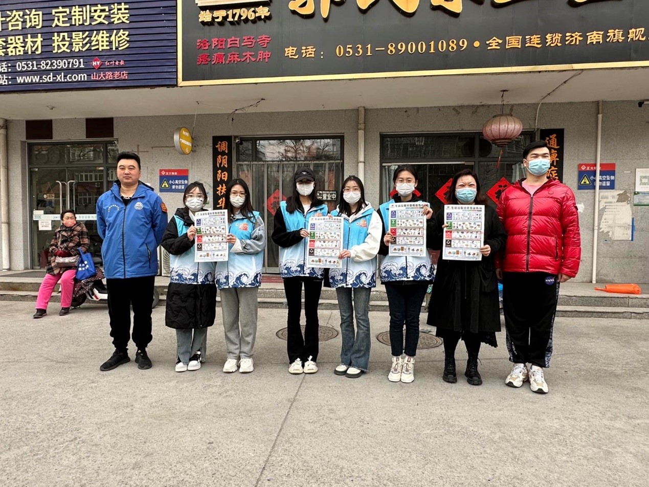 在外卖小哥休息亭,志愿者们分工合作,清扫地面、倒垃圾、擦桌子、擦板凳,向过路行人发放《济南市生活垃圾分类投放明白纸》,现场秩序井然。工作中,外卖小哥还时不时传来一声声谢谢,向志愿者竖起一根根大拇指,这也深深地触动着志愿者们。