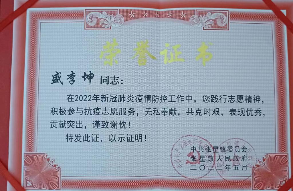 “2022年6月,烟台招远确诊了新冠肺炎阳性患者,此后全城进入戒严状态,我所在的村庄——山东省烟台市招远市张星镇盛家庄村,为了全村人民的安全,开始进入半封村状态。身为入党积极分子的我意识到应该与村里的党员同志一同并肩作战,次日,我主动找到村主任,说明了我的意愿,随后与村里数名党员同志24小时不间断轮班坚守岗位,对来往车辆和进出村人员进行体温测量和登记。”2022级体育教育专升本盛李坤同学说......