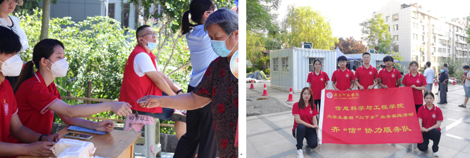为发展社区志愿服务,提高社区居民知骗防骗能力,倡导移风易俗,形成与邻为善、以邻为伴、全民读书、携手抗疫的良好社区氛围,齐“信”协力三下乡服务队组成实践志愿服务队深入凤凰山社区,开展社区志愿服务活动。队员们积极投身社区疫情防控志愿服务中,分为三组来到社区三处核酸站点担任信息员,积极配合医护人员,为到场群众测量体温、提醒居民戴好口罩并保持两米间距、扫描健康码、发放贴纸,帮助社区核酸检测工作有序进行。在烈日炎炎下,队员们不惧艰辛、坚守岗位、各司其职,守护好疫情检测的第一道关口,充分发挥社区志愿服务在疫情防控中的重要作用,以实际行动诠释了“奉献、友爱、互助、进步”的志愿服务精神。