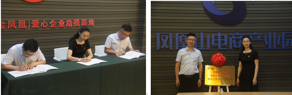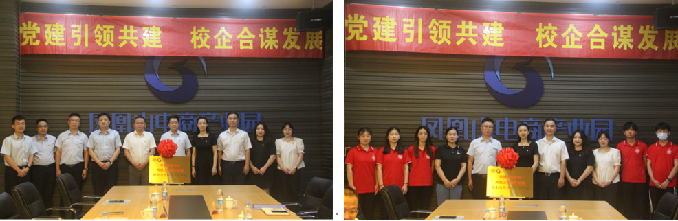 三方围绕人才培养、就业市场状况、未来发展趋势等内容展开了深入的探讨,并就下一步深度合作达成共识。贺涛、徐汝亮、赵青三方共同签订《党建共建协议》,徐汝亮、赵青双方共同签订《校企合作社会实践基地协议》,赵青代表校方为山东凤凰山电商产业园授牌,并与在座各位领导及来宾合影留念。
