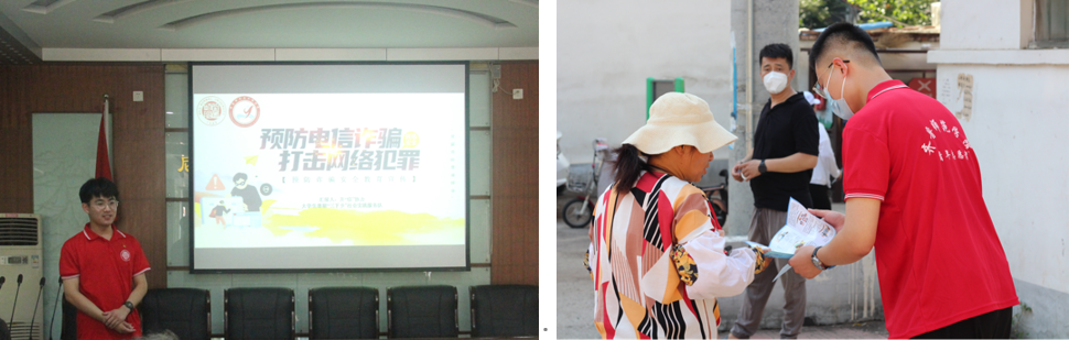 随着通信技术的不断发展,诈骗手段层出不穷,为进一步夯实群众防范网络电信诈骗的基础工作,服务队宣讲团成员王金亚结合案例,向社区居民分别介绍电信诈骗、网络诈骗、贷款诈骗和赌博诈骗四类常见诈骗方式,提醒大家安装注册“国家反诈中心APP”,并开启来电预警、短信预警、APP预警功能,做到六个一律、八个凡是,从而有效预防诈骗。服务队队员在社区各处发放预防诈骗宣传手册,并向居民揭露诈骗犯罪手法、解析典型案例,同时进行防骗提示。