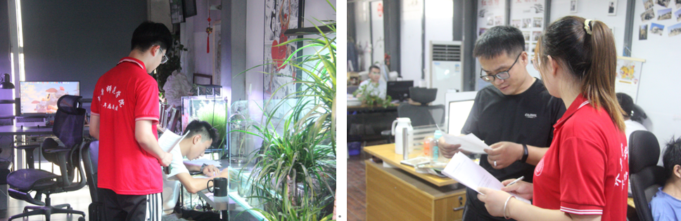 随后,队员们跟随园区负责人参观园区直播电商创业基地,详细了解了电商平台从产品研发、外包装设计到品牌打造、线上营销的整体运营模式。企业工作人员手把手教给大家运营初期如何引流、如何准备产品介绍、如何让直播的整体节奏更加流畅,以及设备的运用与调试等。服务队队员耐心听讲,虚心求教,和工作人员一问一答,同时每个人都参与到了直播带货中,亲身体验现场直播。服务队队员边走、边看、边听,切身体会、了解电商发展情况及行业前景。