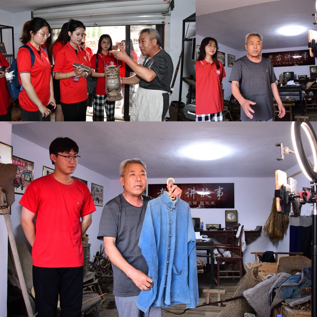 在“临沂好人”苗成功爷爷这里,队员们在抖音直播平台与他共同开展了一场别开生面的“忆苦思甜”中英双语直播。在外国语学院官方抖音直播间及“老苗讲故事”直播间,队员们充分利用自己的英语专业知识,与穿上蓑衣、戴上草帽的苗爷爷相互配合,通过英汉同声传译了现场直播了这堂线上“忆苦思甜”课,让更多的青少年乃至国际友人真切感受中国红色文化的独特魅力。直播过程中,队员们利用自己的英语专业知识,配合着苗爷爷一起传播了中国红色文化。同时,队员们真正认识到英语学习在当今时代的应用价值,体会到英语在讲好中国故事、传颂中国精神、增强民族文化自信方面的重要作用。