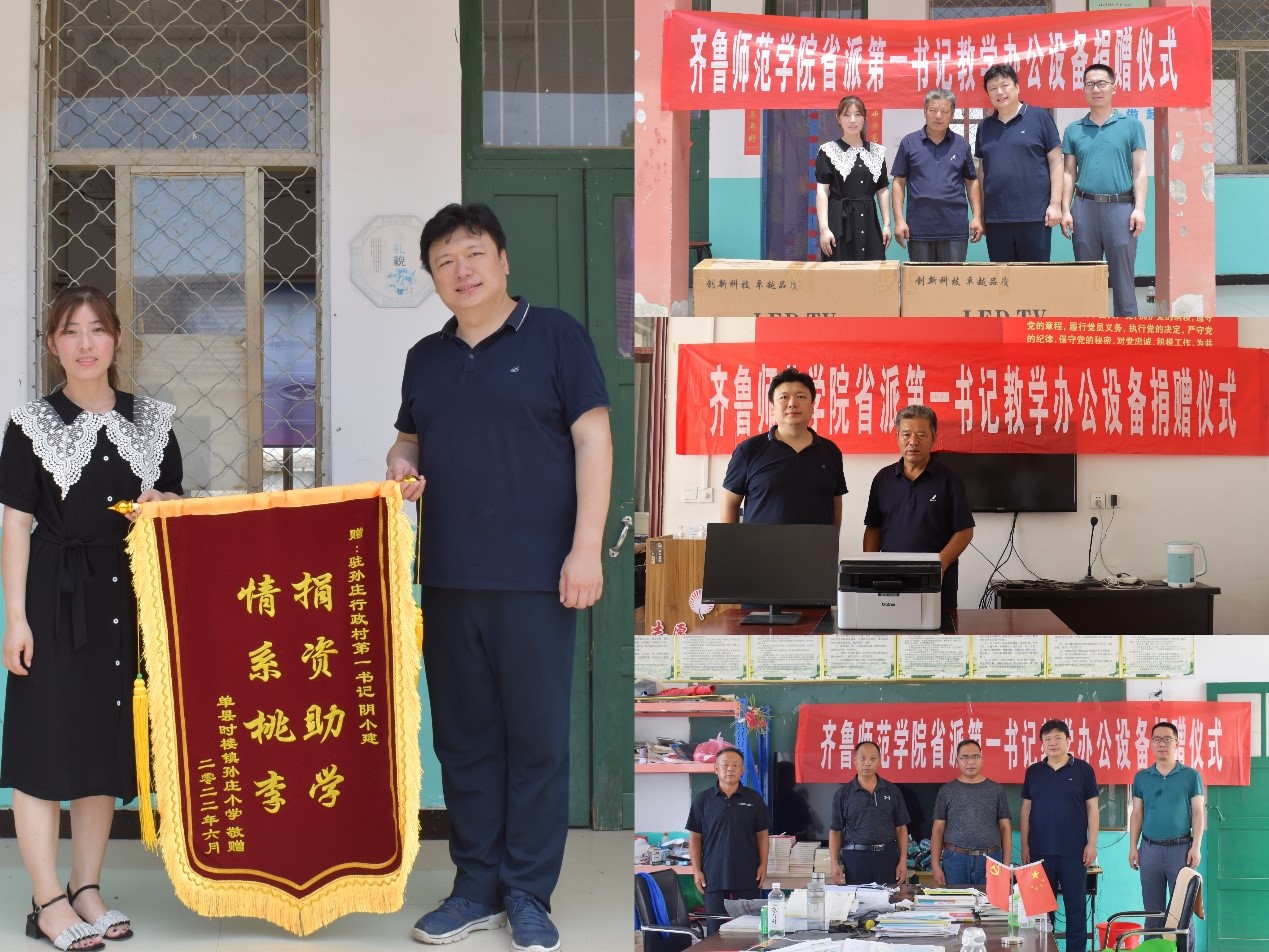 在社会实践活动中,学校派驻时楼镇“第一书记”阴小建在走访调研中了解到学校缺少信息化教学条件,村两委缺少办公电脑等设备。他积极联系后方单位和爱心企业,向两所村小学和村两委捐赠了一批教学办公设备和图书文具,丰富教学资源,提升当地学校的教学信息化水平,改善村两委的办公工作条件。