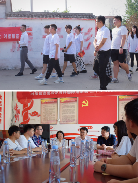 本次活动得到了时楼镇党委政府和孙庄村两委的大力支持。时楼镇党委书记彭修兴带领队员们参观曹马古镇民俗馆和杨作磊烈士纪念馆。队员们既震惊于三千年单州的历史渊源,也感动于湖西革命老区在抗日战争和解放战争中的悲壮篇章。参观结束后,彭修兴与队员们进行座谈,介绍留鲁就业和返乡创业的优惠政策,畅谈乡村振兴的美好未来,鼓励青年学子与他相伴扎根基层、建功立业。
